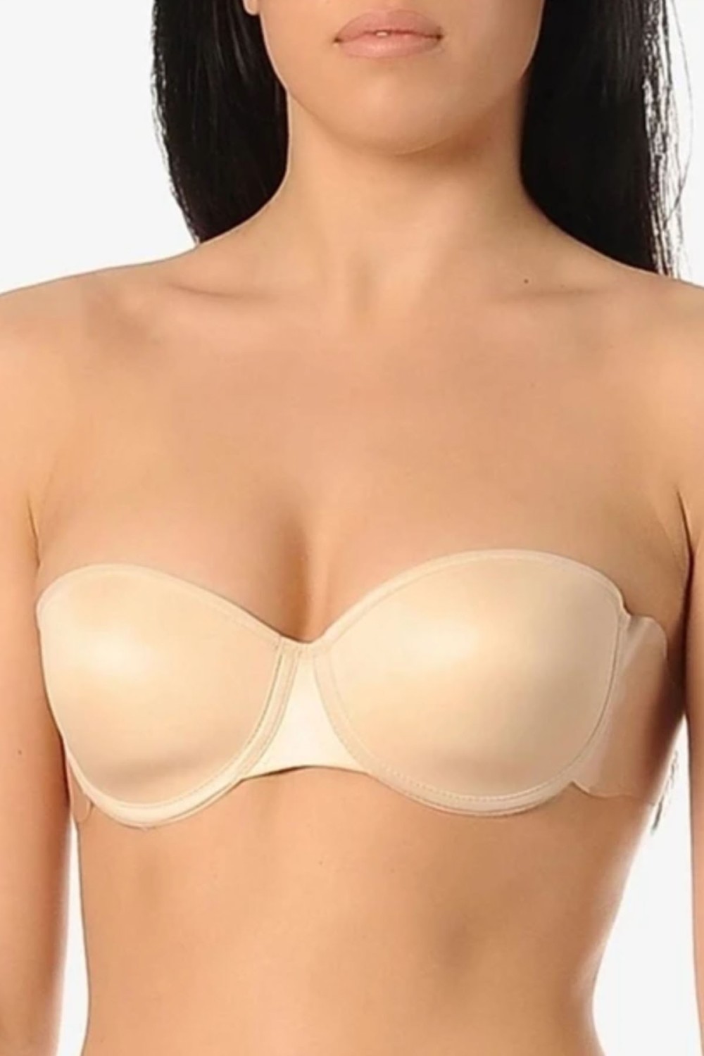 Balen Desteği: Sütyen, alt kısmındaki balenler sayesinde göğsü alttan güçlü bir şekilde kaldırır ve destekler. Bu, sırtsız bir modelden beklenen dik duruşu sağlar.
